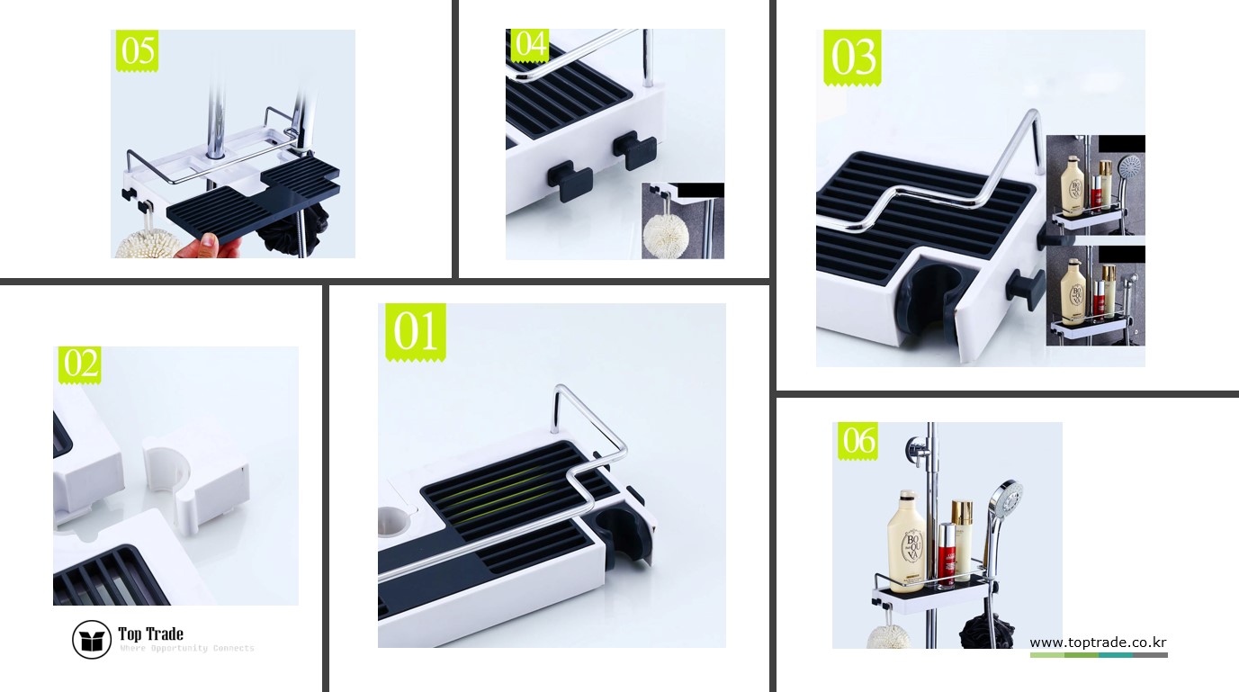 You don't need to nail. It is not even an adsorption product that drops easily. It's a universal tray installed on the shower stand. It can withstand loads of up to 10 kilograms, so shampoo, lins and cleansers can be placed on the floor. It consists of removable stands for easy cleaning! Don't worry about stain of water. It also has shower balls and shower hangers, which can be used for practical purposes. Write a small bathroom gap twice as wide.